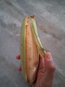 Lather your hands with coconut oil before peeling the green plantains.
