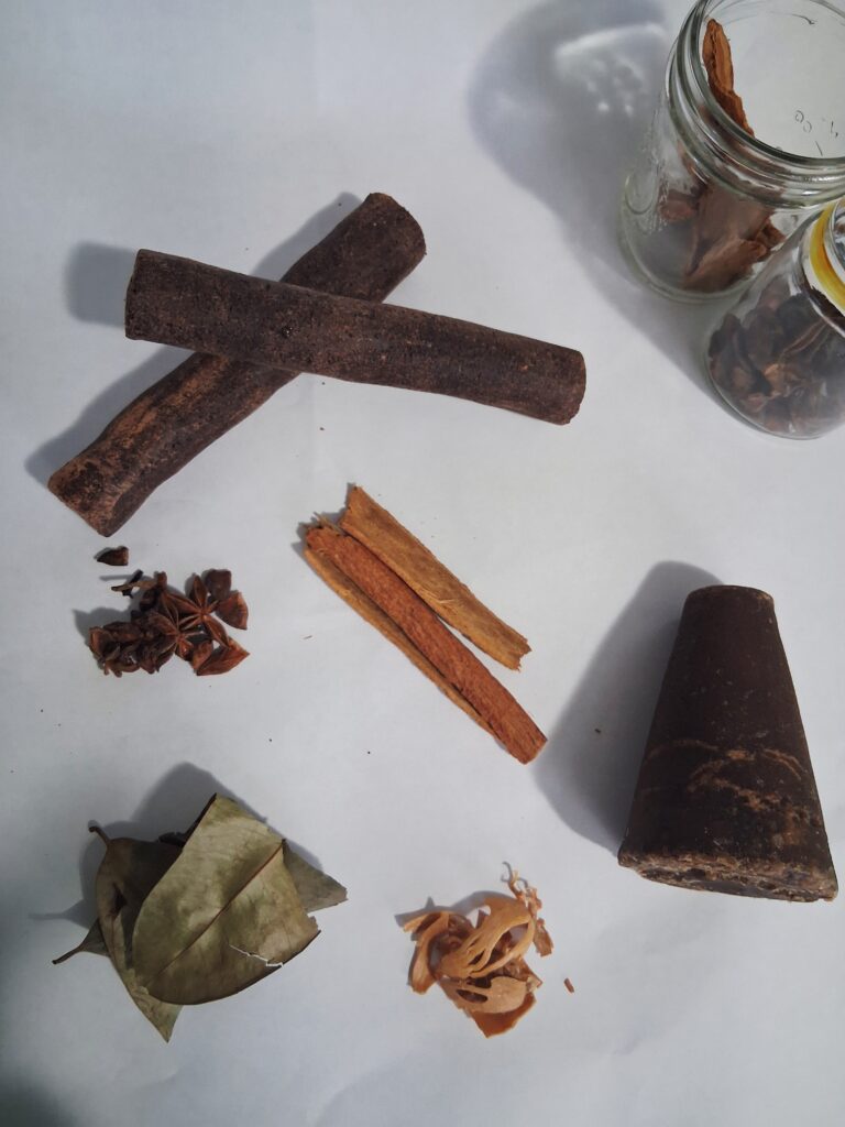 Spices: bay leaf, whole star anise, and cinnamon stick.